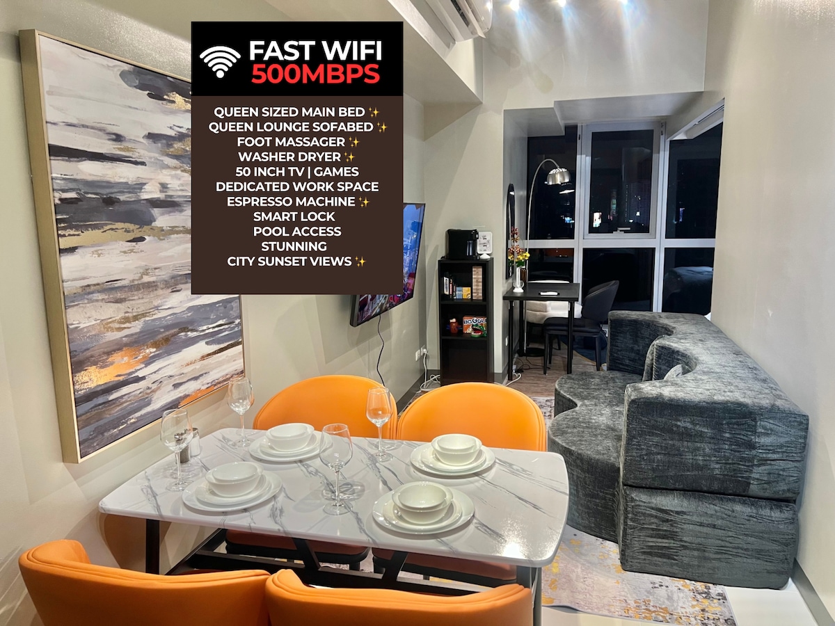 Relax and enjoy the chill vibes in this industrial-themed designer loft, situated in the heart of Mandaluyong City and Ortigas ● High-speed wifi with a 100Mbps connection, perfect for working remotely ● 55-inch Smart TV with Netflix and Amazon Prime for that awesome binge-worthy weekend ● Just a short walking distance from Edsa Shangri-La, SM Megamall, Estancia and Rockwell Business Centre ● Satisfy your appetite from numerous nearby restaurants, bars, weekend night markets and food trucks