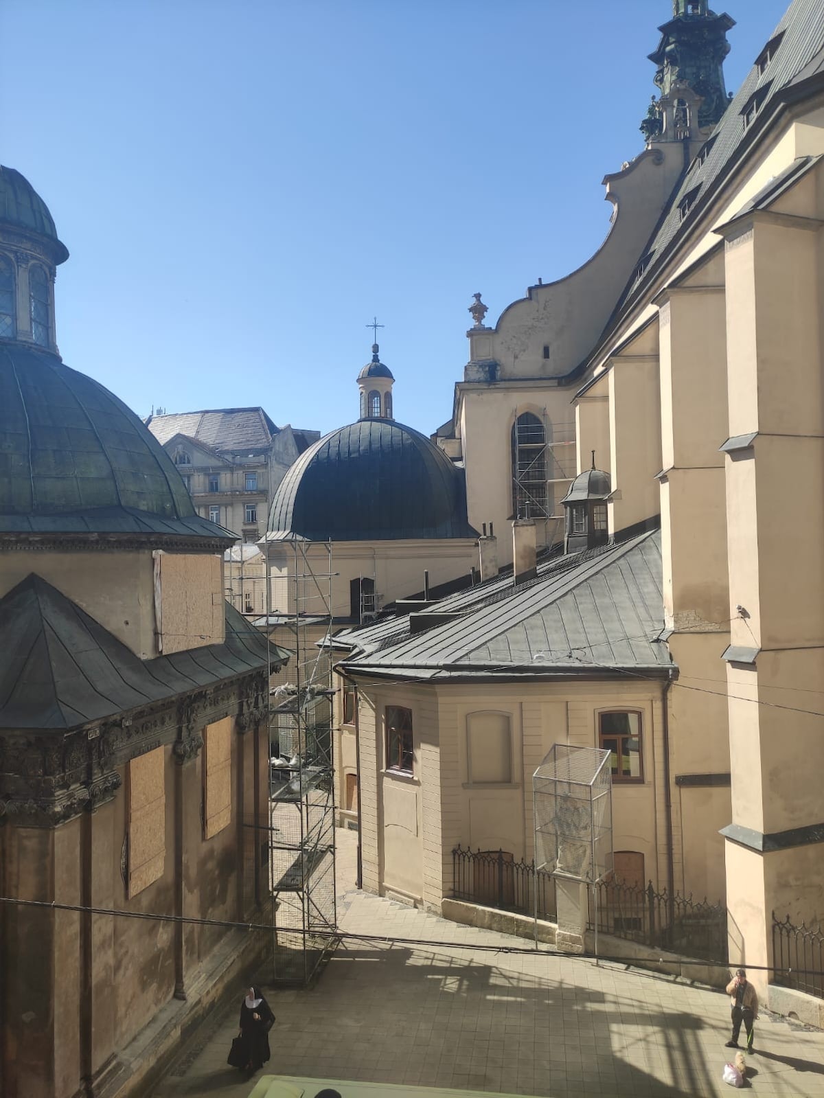 Nestled in the heart of the city, apartment is set in a peaceful inner courtyard close to the main attractions away from the noise of busy streets. A perfect choice for guests who want to stay near vibrant city life while enjoying a calm atmosphere at home. The apartment offers stable fiber-optic Wi-Fi with backup power. The building is historic, over 120 years old, with charming wooden stairs (3rd floor, no elevator) and an authentic Lviv courtyard shared with local residents and friendly cats.