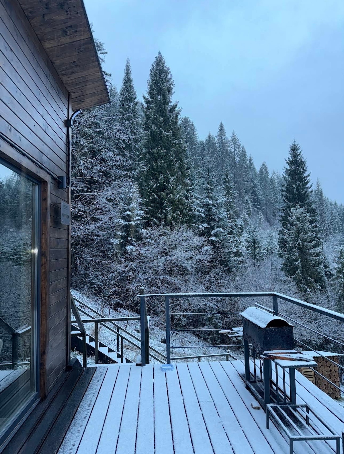 Happy Nest Challet - комфортний котедж з трьома спальнями, чаном та басейном! В будинку простора, повністю обладнана кухня-вітальня, три затишних спальні, два санвузли, а найголовніше - завдяки панормним вікнам, з усього будинку відкривається чудовий краєвид на найчистіший ліс та навколишню природу! Поруч з котеджем розташована зона барбекю, а також величезна тераса, чан на дровах та басейн з підігрівом! Ласкаво просимо в Happy Nest Cottage!☀️🤍