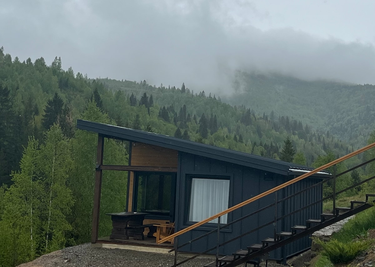 Афрейм будиночок для 2-4 гостей з басейном та джакузі на дровах. У ньому красива простора вітальня з величезним диваном, обіднім столом, каміном та панорамним виглядом на гори. Кухня обладнана необхідною побутовою технікою, посудом, а також базовим набором продуктів. На другому поверсі затишна спальна зона з мʼяким матрацом та захоплюючим краєвидом. Поруч з будиночком є зона барбекю. У нас швидкий інтернет, доглянута територія навколо будинку, а також найчистіший ліс та гори.