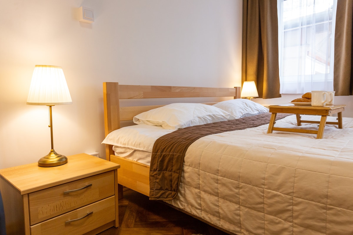 Затишні апартаменти в центрі Львова. 10хв пішки до Площі Ринок або 5хв трамваєм. Сучасний ремонт, є усе необхідне для комфортного перебування. Неподалік є затишна пекарня, де ви зранку можете придбати запашну випічку. З вікна відкривається панорама на Храм Святого Лазаря. 2 хв до Палацу Сапігів та 5 хв до Палацу Потоцьких.