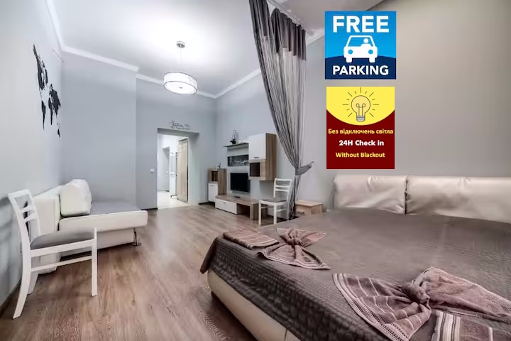 Представляем вам нашу современную роскошную двухкомнатную квартиру в самом центре Львова. Квартира имеет дизайнерский ремонт. Она состоит из кухни студии с огромным комфортабельным диваном, который можно превратить в спальное место для 2 человек. Две спальни полностью отделены друг от друга.