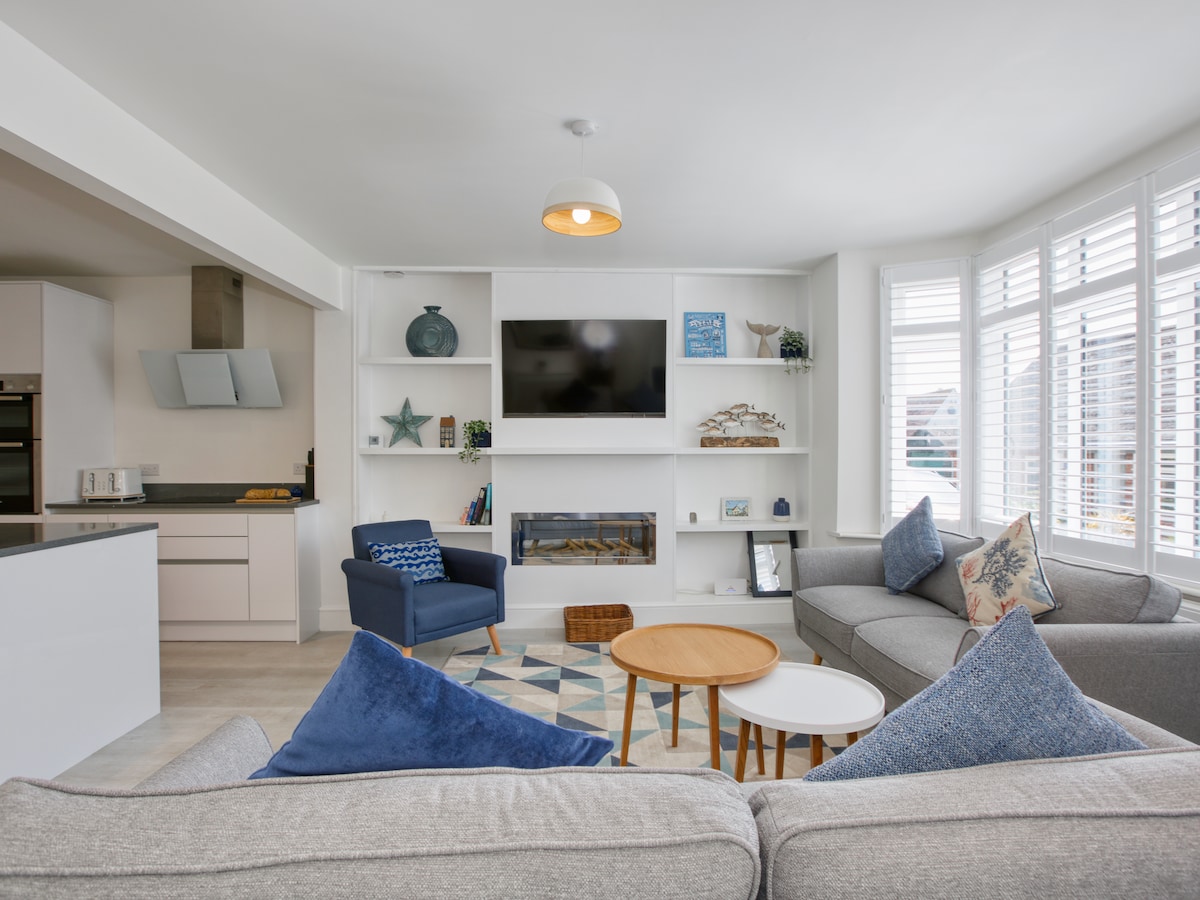 Kick back and relax in this calm, stylish accommodation. Enter through the front door into the open plan spacious, contemporary kitchen, dining and living area. The Kitchen is extremely well equipped and includes Nespresso coffee machine and Dualit appliances. The notably large bedroom has an en-suite wet room and French doors opening onto a veranda and garden with stunning views of the sea and coast. The garden has furniture to relax in whilst enjoying the views. 15 mins walk to beach/town