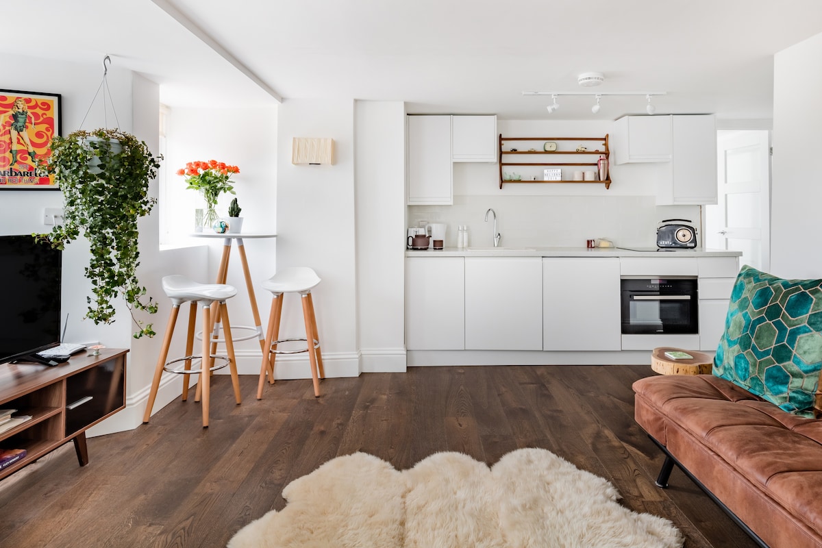 Newly converted from a former 1940’s school canteen, this dog friendly Ground floor Apartment is located just a stones throw from the front beach and from the heart of the town centre bustling with independent shops & restaurants. Located at the bottom of Lyme and the flattest part of town makes this apartment the ideal option for those wanting to avoid hills. Relax in a chic open plan living area with high vaulted ceilings, exposed industrial features and a brand new modern kitchen.