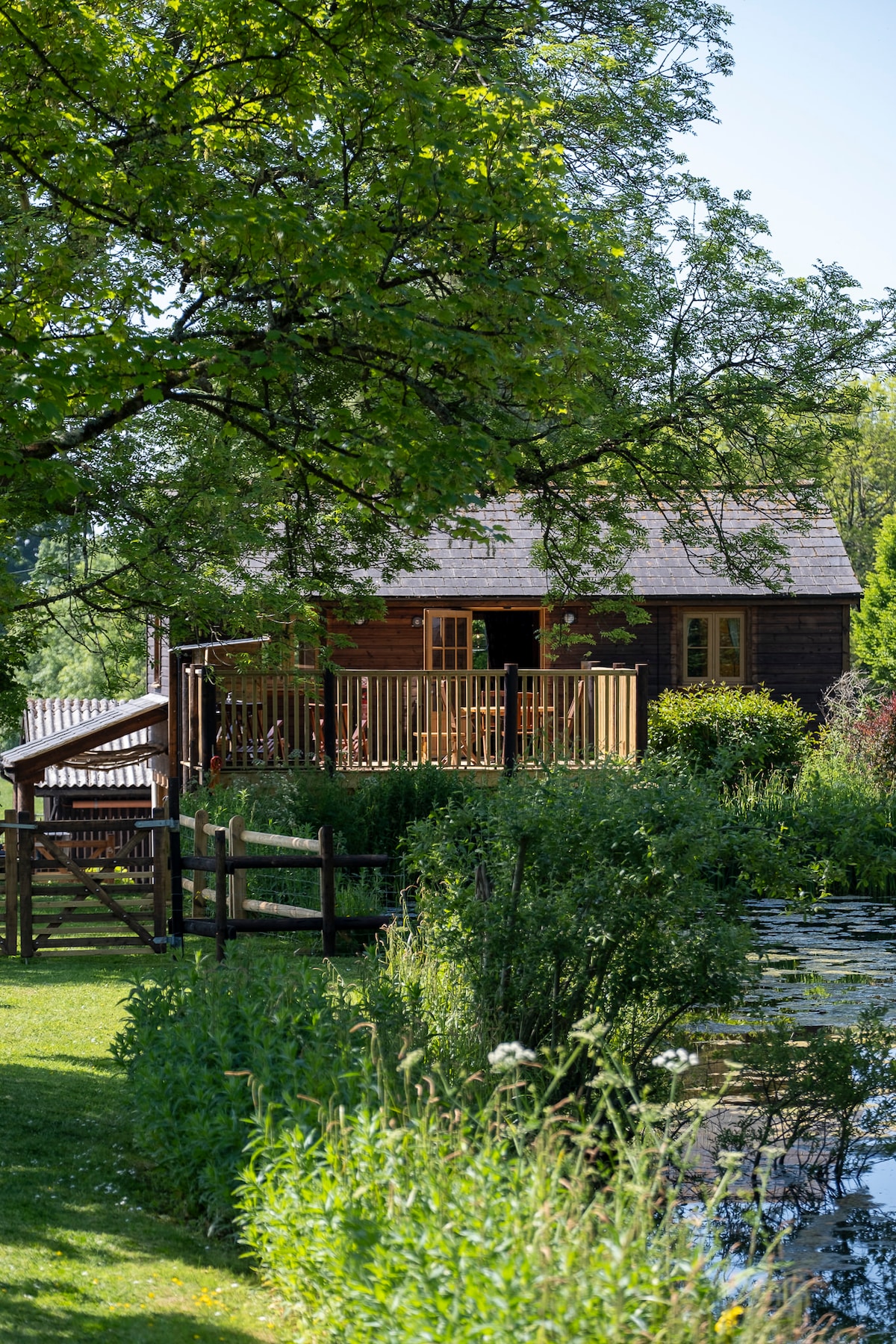 Homestead is in a lovely peaceful setting overlooking the River Lym. Recently refurbished to a high standard creating a light and airy space, this cosy and comfortable cabin retains much of its original charm. Easy access to beach, town and countryside provides a perfect base for holidays in Lyme Regis. It includes two bedrooms, a spacious living room, fully equipped kitchen, bathroom with shower, conservatory overlooking the river and a sunny terraced garden. Bookings start Fridays or Mondays