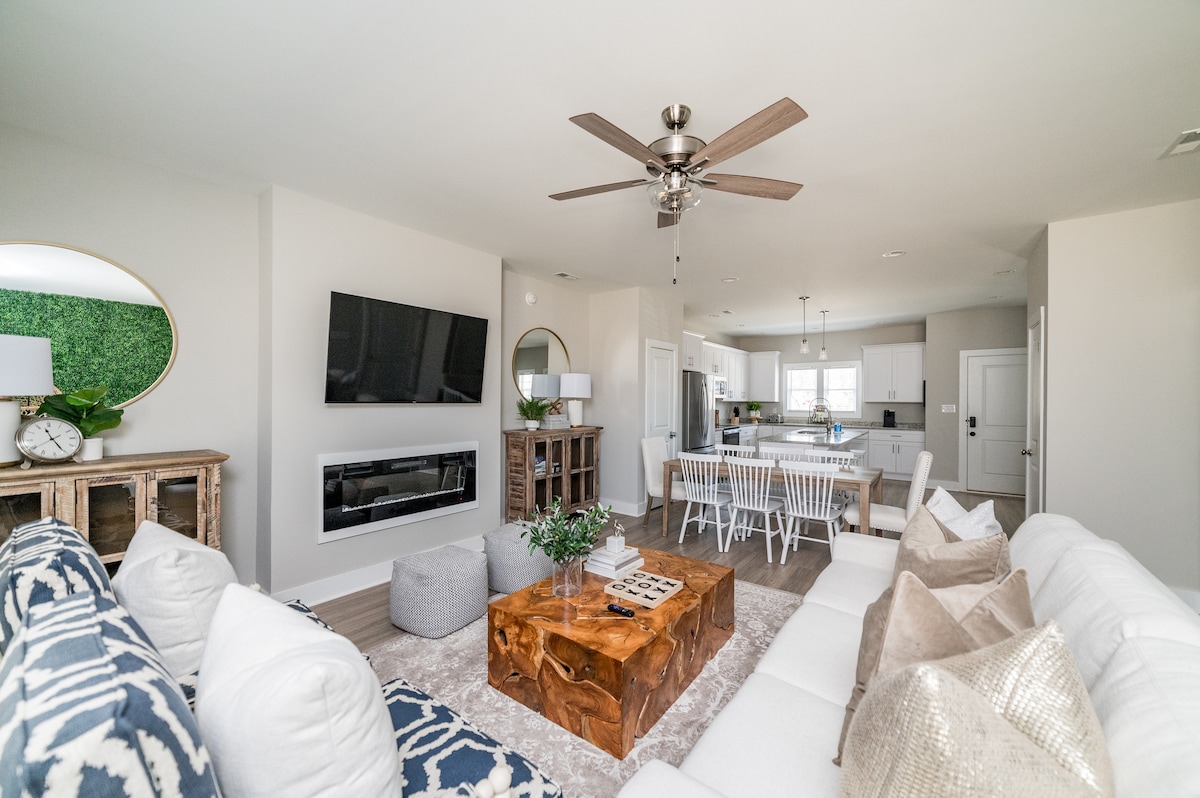 This pristine cross between chalet and modern farmhouse beckons you to stay. Its comfy beds, reading nook, well appointed kitchen, stash of games, fireplace and TV's will tempt you to slow down, relax, and reconnect. Here, the best of two worlds meet. Forest and neighborhood, wilderness and civilization. A unique location and ample windows offer panoramic views of nature less than 5 minutes from stores and restaurants. Liberty University, the airport, the mall, and hospitals are within 5 miles.