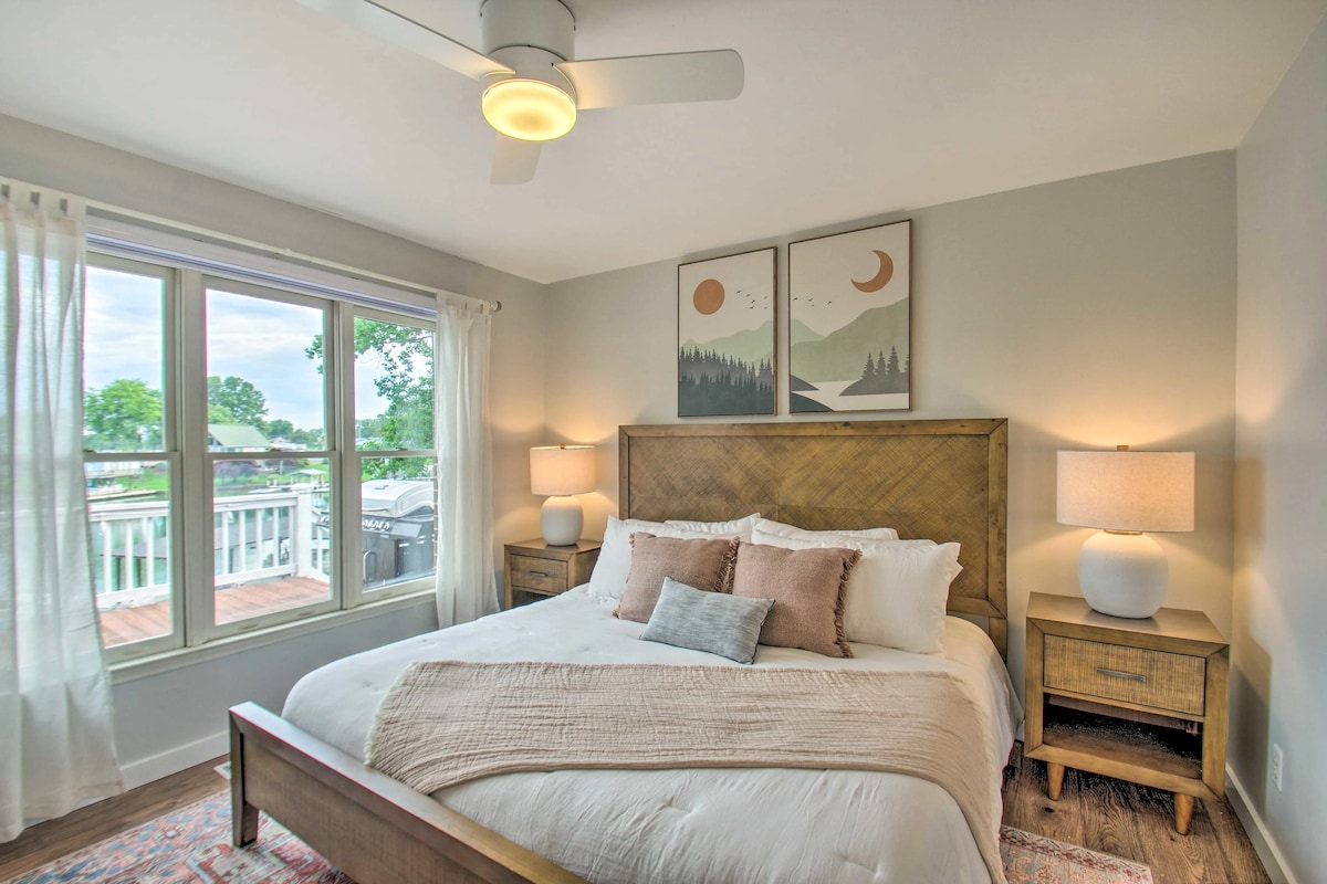 Fantastic getaway on beautiful Smith Mountain Lake! Enjoy stunning views on two sides of this top-floor, corner condo with a wrap-around deck and natural shade. It is perfect for a relaxing break or an adventure! Activities include boating (with guest docks), swimming (indoor and outdoor), pickle ball, working out, and relaxing in the hot tub, steam room or sauna! If you are working remotely, this quiet space includes a desk and high-speed wireless. The individual HVAC unit also has a UV light.