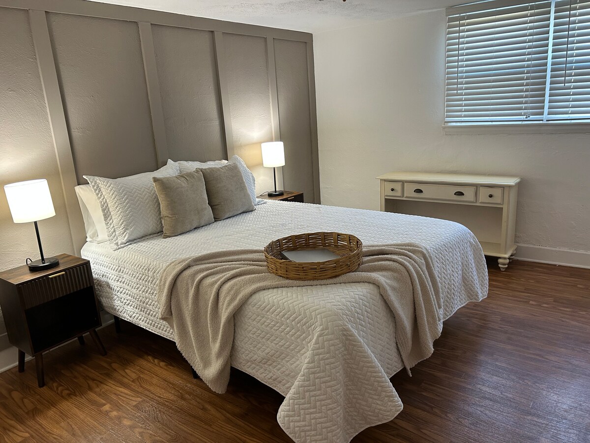 Formally a garage, this property has been transformed into a trendy two bedroom home! Located on premises at The Midtown Lofts, you can enjoy all of the amenities the property has to offer. Pool, fitness center, beach volley ball court, fire pit and the private movie theater. Pool is seasonal. The large windows allow all of the natural light you want! Two full-size beds. There is also a work space for those of you who are traveling for business, but please try to have some fun as well!