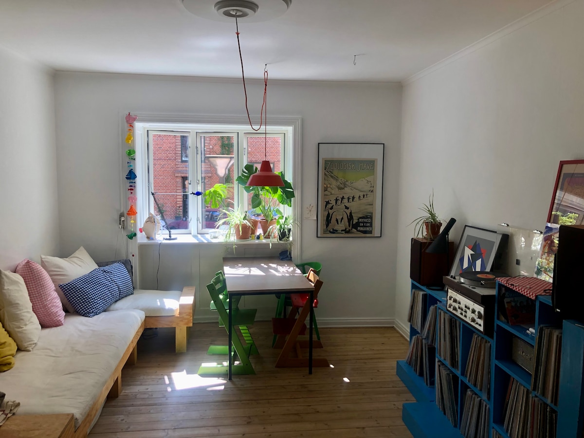 The apartment is located in inner Copenhagen in the middle of the vibrant shopping district. It is facing the courtyard, but with an open window you can still hear the rich city life in the background The neighborhood is filled with cafes, bars and shopping opportunities. The famous street "Strøget" is an arms length from the apartment, and runs through the entire midtown. It is perfect for a couple. It has a 200 x 180 bed in the bedroom and a new sleep sofa.