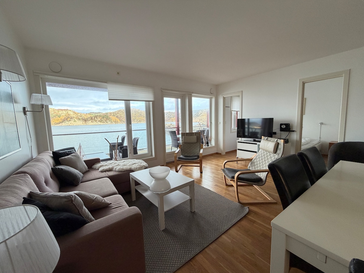 Leilighet med spektakulær utsikt over havet og Sjøsanden. Den er 110 km² og har tre soverom, to bad, og en stor terrasse på 40 km². Med en unik beliggenhet ved innseilingen til Mandal by kan du sovne til rød kveldssol, høre brusende hav og kjenne varmen fra hvite sandstrender. Byen ligger en kort spasertur unna hvor du finner sjarmerende spisesteder, butikker, museer og kulturhus. To parkeringsplasser i parkeringskjelleren.