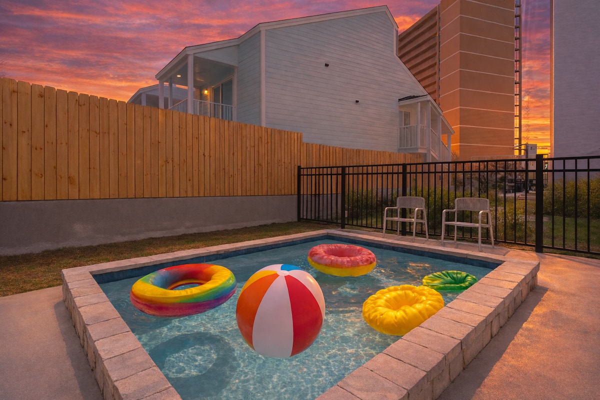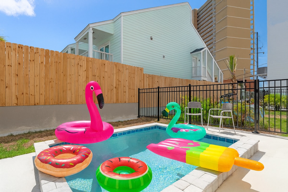 Early Bird Specials Live! Welcome to "Mother of Pearl", our luxurious family vacation home! This 2-story, 2100 sq ft home is perfect for families and groups. Enjoy a private heated pool, chaise lounges and a dining table, all just a 6-minute walk to the beach. The house features 2 master bedrooms, smart TVs, and comfortable Casper mattresses in all bedrooms.