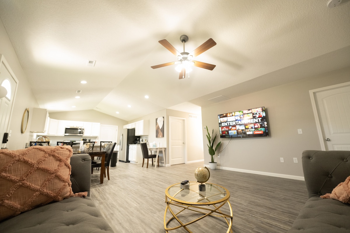 Experience the newly remodeled, spacious, 2-bed, 2-bath home, conveniently located just a block from ESU and close to downtown. This amazing property offers a fully stocked kitchen, free parking, high-speed wifi, and access to Disney+, MAX, HULU, & ESPN on 58" Roku TV. Enjoy a restful night's sleep, each bedroom has a comfortable queen bed, a 40" Roku TV, and each room has full temperature control. Plus, coffee and snacks are included for your convenience.