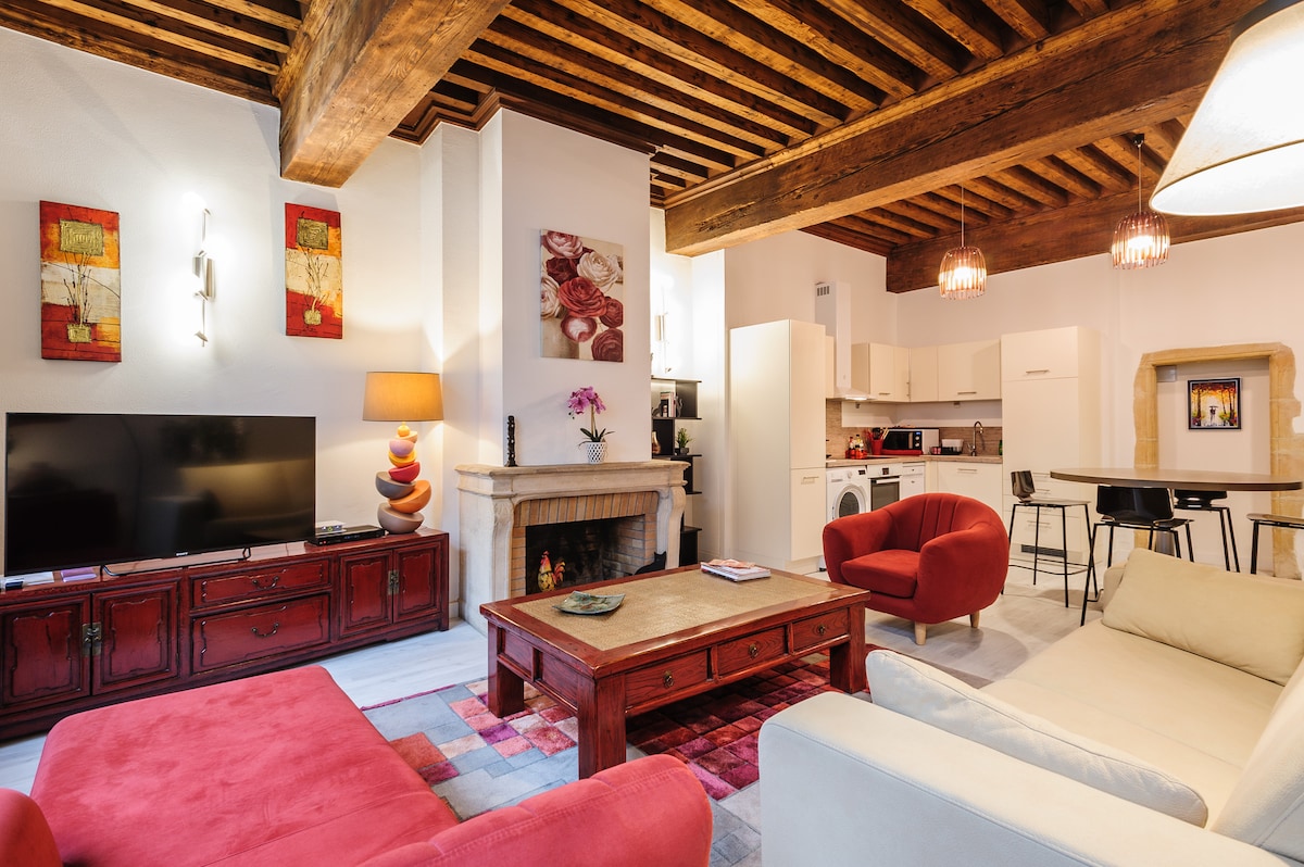 Completely renovated charming apartment , 65 m2, in the heart of the pedestrian area of the old city, 2nd floor of a historic building dating from the Renaissance. Air conditioned apartment Everything can be explored by foot ! Metro station "Vieux Lyon" at 2 steps - Opportunity to have a private parking spot (if available)