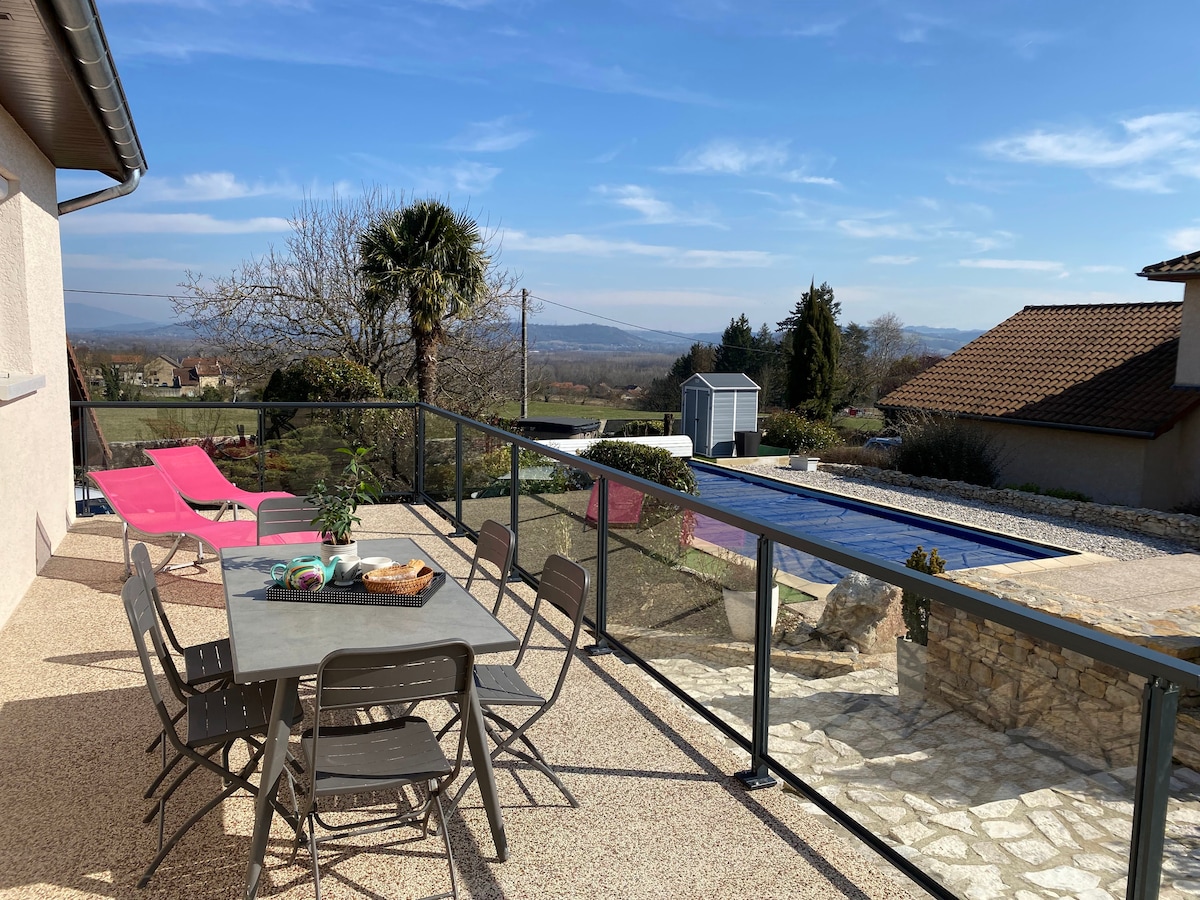Dépendance indépendante en duplex, au calme, avec vue sur les Monts du Lyonnais, à 30 min de Lyon. En bas : cuisine équipée, table à manger, canapé-lit, salle d’eau et WC séparés. En haut : lit double (120x190) et lit simple. Extérieur avec table, banc et accès au bassin ombragé du jardin familial. Proche commerces, restaurants et départs de randonnées. Confortable pour 4 personnes, avec 5 couchages disponibles.