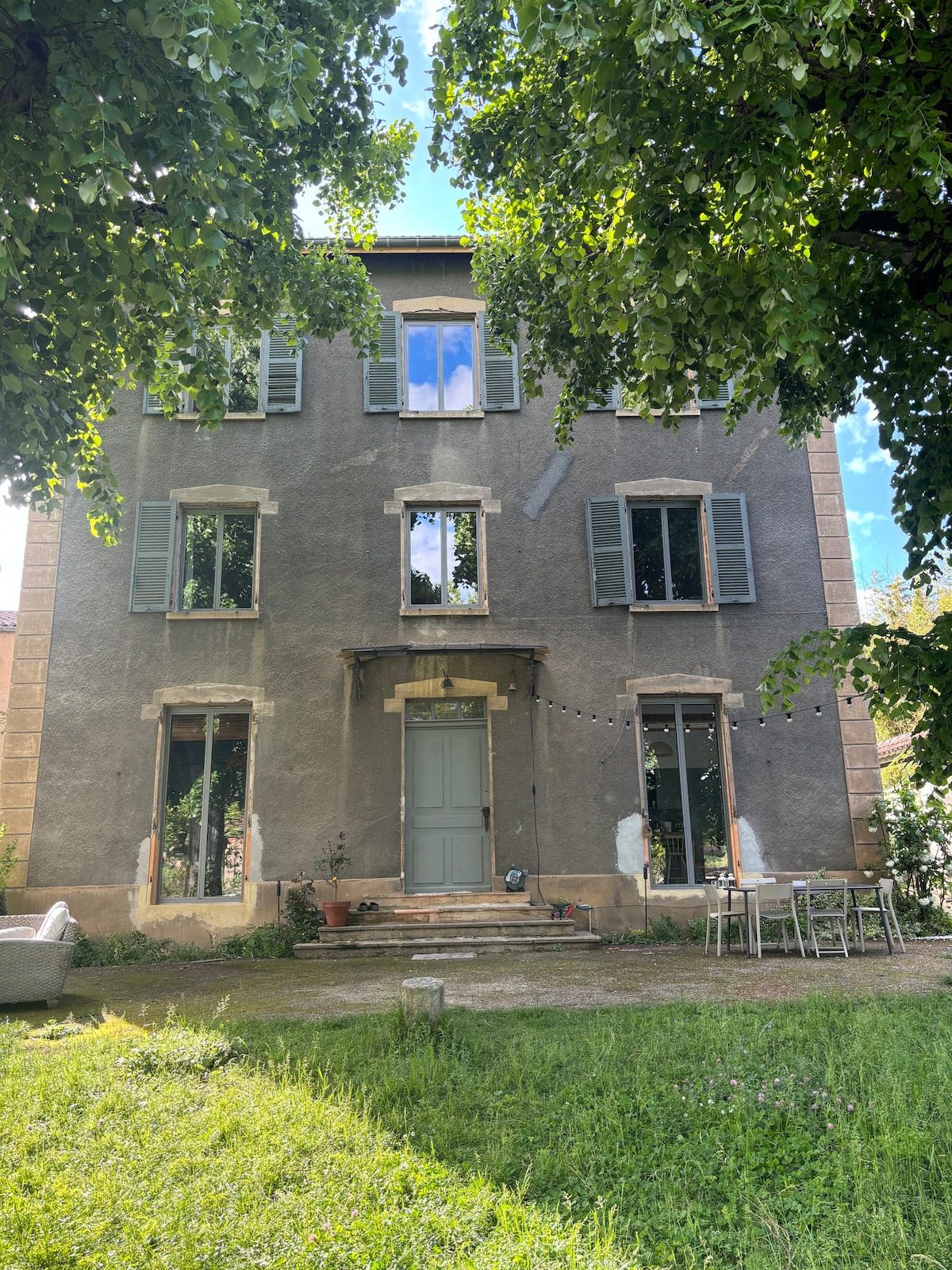 La maison "Aux deux vieux platanes", véritable havre de paix situé à 25 minutes de Lyon, accueille 15 personnes grâce aux 7 chambres doubles (dont une chambre familiale). Ce lieu élégant offre le parfait équilibre entre le calme d'un cadre naturel et la richesse culturelle et touristique de la ville. Il est agrémenté d’un jardin arboré et paysagé ainsi que d’une grande piscine chauffée sur demande, sécurisée par une alarme et utilisée jusqu'à 22h par respect du voisinage.