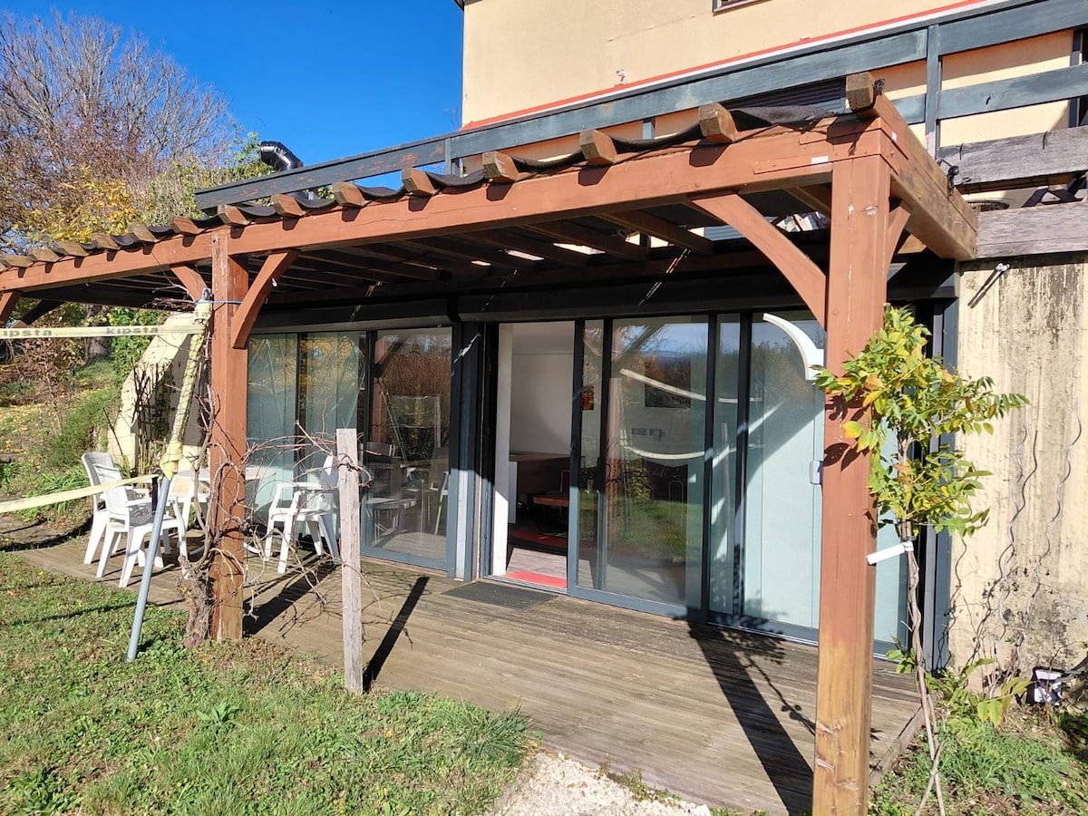 In our house, called Espace Beléverte, two 2 bedroom apartments have been fitted out on the second floor. This ad concerns a single apartment It consists of 2 large bedrooms, a kitchenette and a shower room. Maximum capacity 4 people Possible access to the garden, from 9am to 9pm. In the garden there is a swimming SPA, a jacuzzi, a boules court, a trampoline, a slide, a table tennis table, griddle...shared with the tenants of the second accommodation and my family