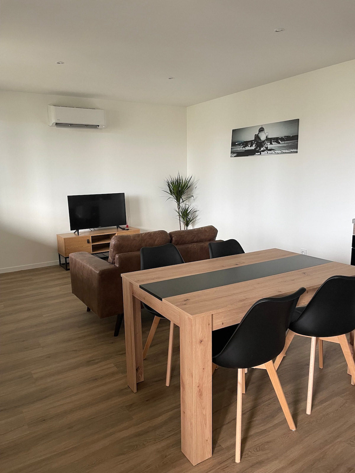 Magnifique T2 entièrement neuf et équipés tous confort. L'appartement dispose : - d'une cuisine entièrement équipé, - machine à laver /séchante , - coin salon avec télé , canapé convertible pour 2 personnes - salle de bain fonctionnelle avec grande douche , - chambre lit double 160 avec grand placard ( linge de maison fournis , sauf les serviettes de bain ) Proche de toutes commodités , ligne de bus , métro à 10 min en bus parking privé et clos Une caution de 1000€ non encaissé est demandé