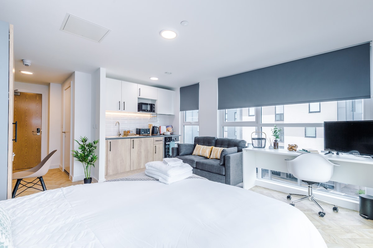 The Old Bank Apartments is a new and unique property in the heart of Blackpool town centre. This luxurious 2 bed apartment is designed to the highest quality, with stunning interiors and luxury amenities this property is perfect for anybody looking for short or long term stays. Each apartment provides fast wifi, secure access, Nespresso coffee machines, 55" smart TVs, Sonos sound systems, LED lighting and much more. You are right in the centre of town with everything on your doorstep!