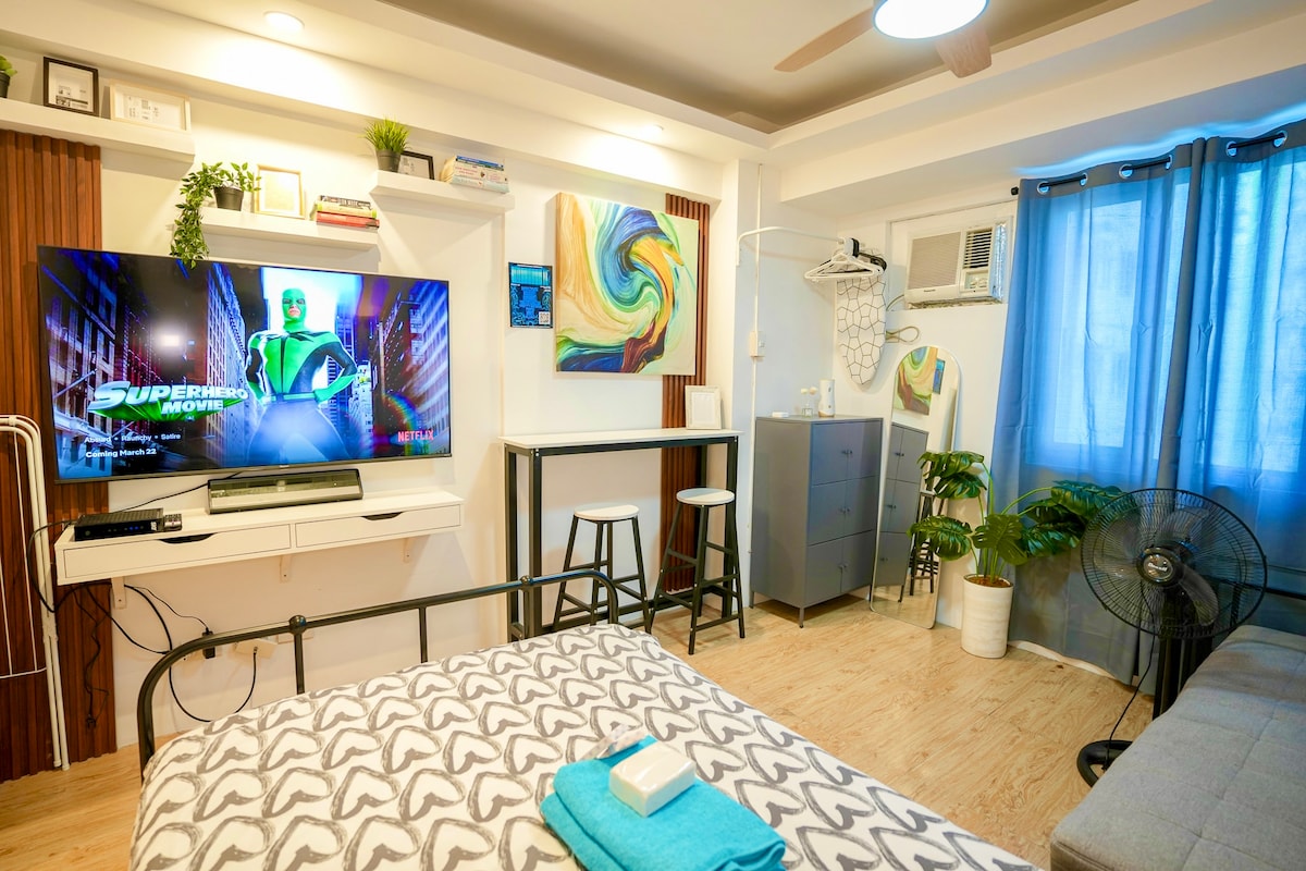 舒适单间公寓@ MPlace,配备43英寸4K电视,靠近Timog