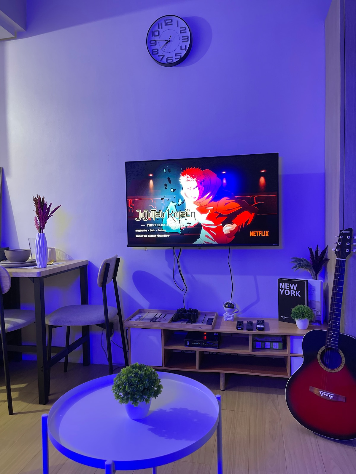 Welcome to this cozy studio unit in Quezon City, your perfect retreat! The space features a comfortable double-size bed, a 55-inch smart TV with Netflix, Disney+, and HBO Go, paired with a recliner sofa, a compact yet fully equipped kitchenette, and a stylish living area perfect for unwinding after a day of exploring. With cafes, restaurants, and attractions just steps away, whether you're here for business or leisure, this studio promises a delightful stay in the heart of the city.