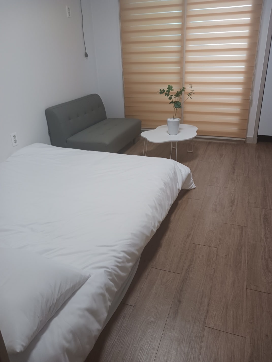 The whole first floor studio in the level of 40,000won. Clear & long term accommodation. A queen size bed. Business trip, interview, training, long term stays, traveling, parking available in the building.