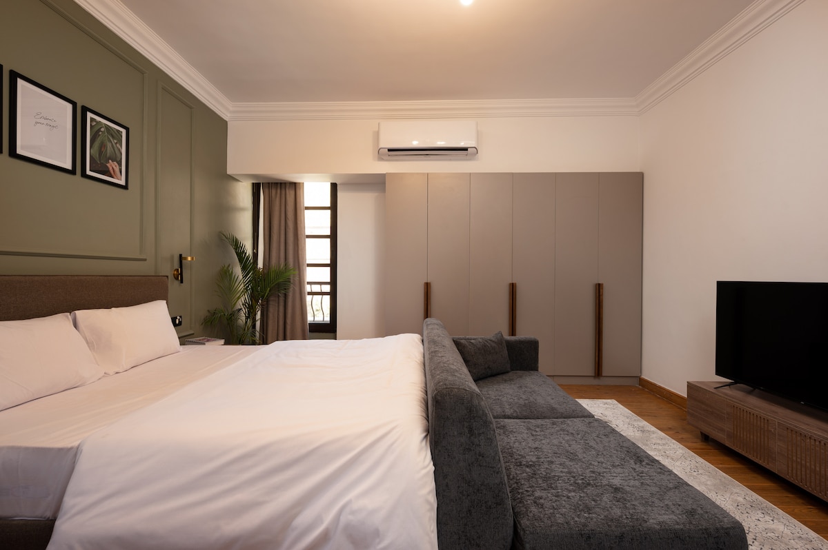 Enjoy panoramic Nile views from the 17th floor of this elegant studio inside the Holiday Inn Residence Maadi. The bright, modern space features a kitchenette, high-speed WiFi, central A/C, and 24/7 security. Guests have full access to the hotel’s pool, gym, restaurants, and room service, plus complimentary housekeeping. Prime location near central Maadi, Downtown Cairo, and the Egyptian Museum—ideal for business or leisure stays.