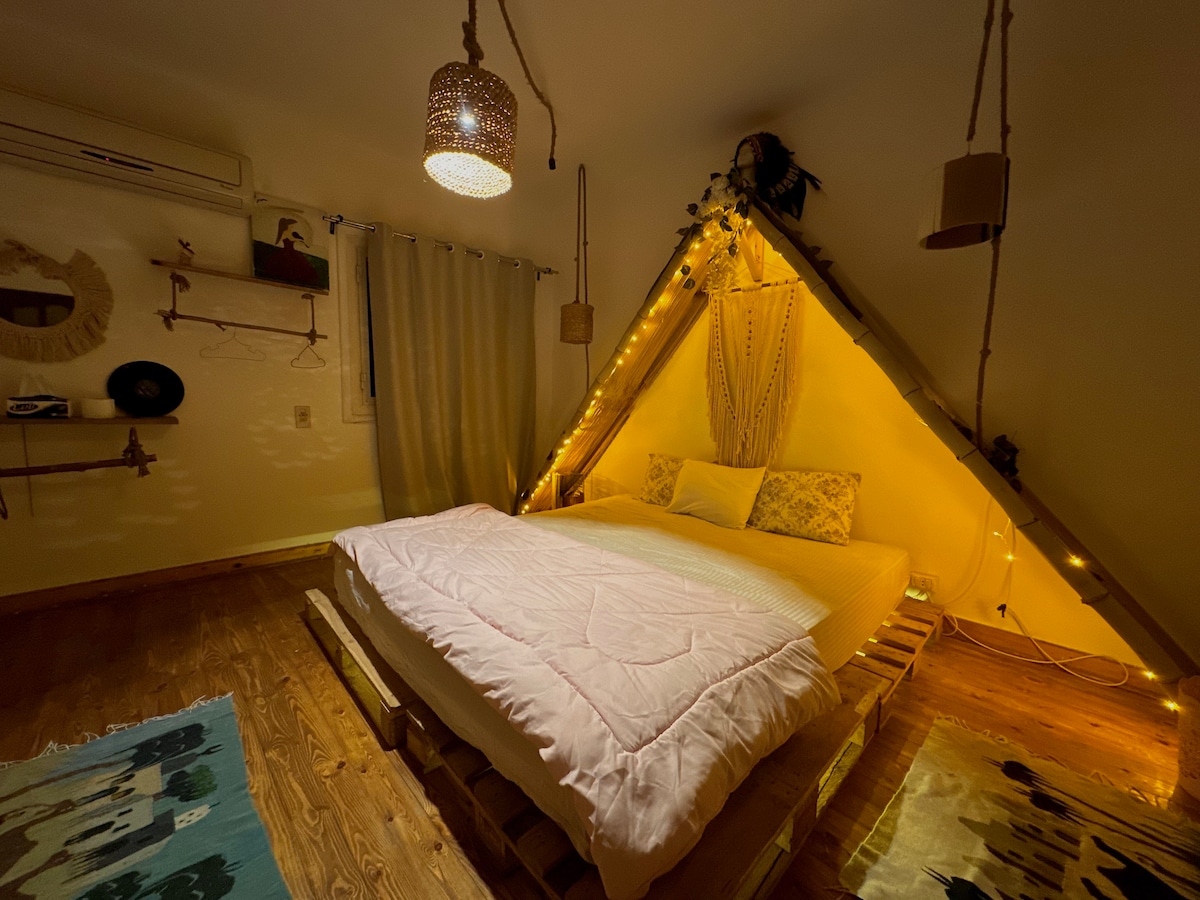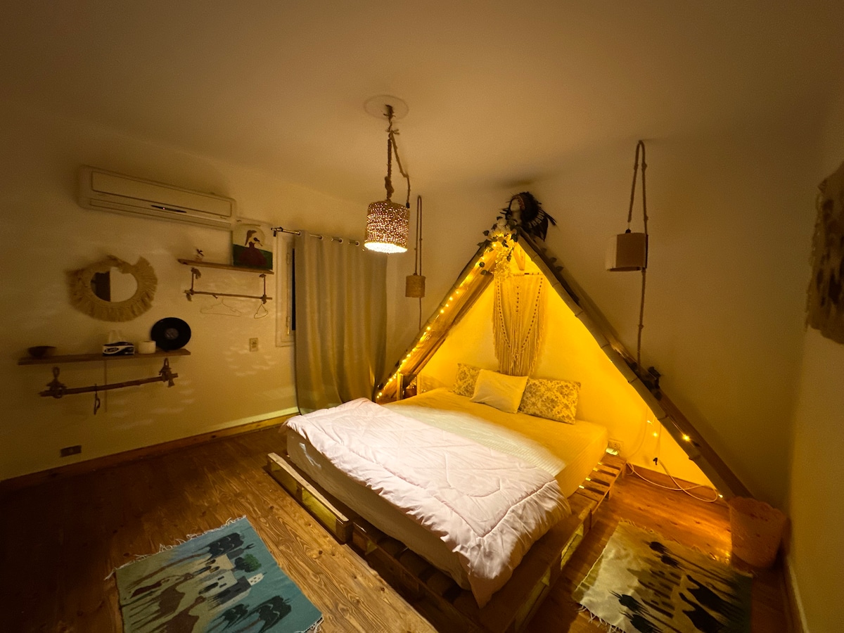 -This unique place is a wooden apartment that is distinguished from others in that it is healthy and environmentally friendly, with a more beautiful design that makes you feel comfortable and gives you a feel of nature -Very Spacious roof with very beautiful view, located 2 minutes from the Nile in the most stylish district in Cairo -You can enjoy a sunny break -Very close to all services on foot -The roof is on 5th floor without elevator and the interior stairs to the roof are a bit narrow