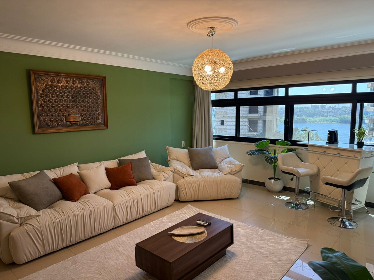 The Apartment offers breathtaking views of the Nile, and on a clear day Giza and Sakkara Pyramids. Five-minute walk to the nearest Metro station and commercial road 09. Living room features large windows, comfortable Sofa, and a flat-screen TV. A 6 seats dining table and a full kitchen. The apartment has two spacious bedrooms, one of which is an en-suite. Other amenities include air conditioning, high-speed Wi-Fi, and a washing machine. Adding to an expansive terrace to enjoy the view.