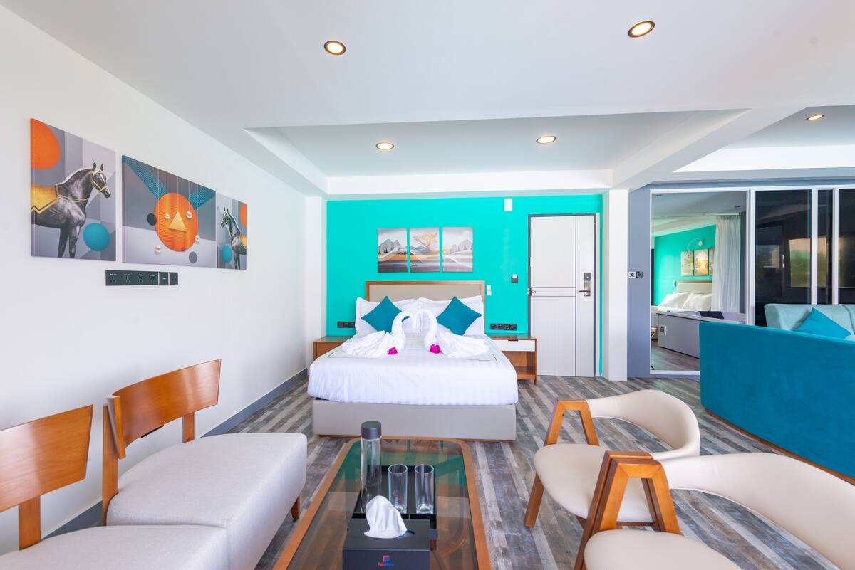 Luxury island escape awaits at Fun Place Beach Hotel, Maldives—ideally located just opposite the pristine shores of Himmafushi. Our elegant Luxury Family Suite and well-appointed rooms offer refined décor, private jacuzzis, and thoughtful amenities. Enjoy complimentary breakfast, then dive into adventure with surfing, snorkeling, fishing, kayaking, paddle boarding, floating mats, and sea bicycles. Perfect for families, couples, and ocean lovers.