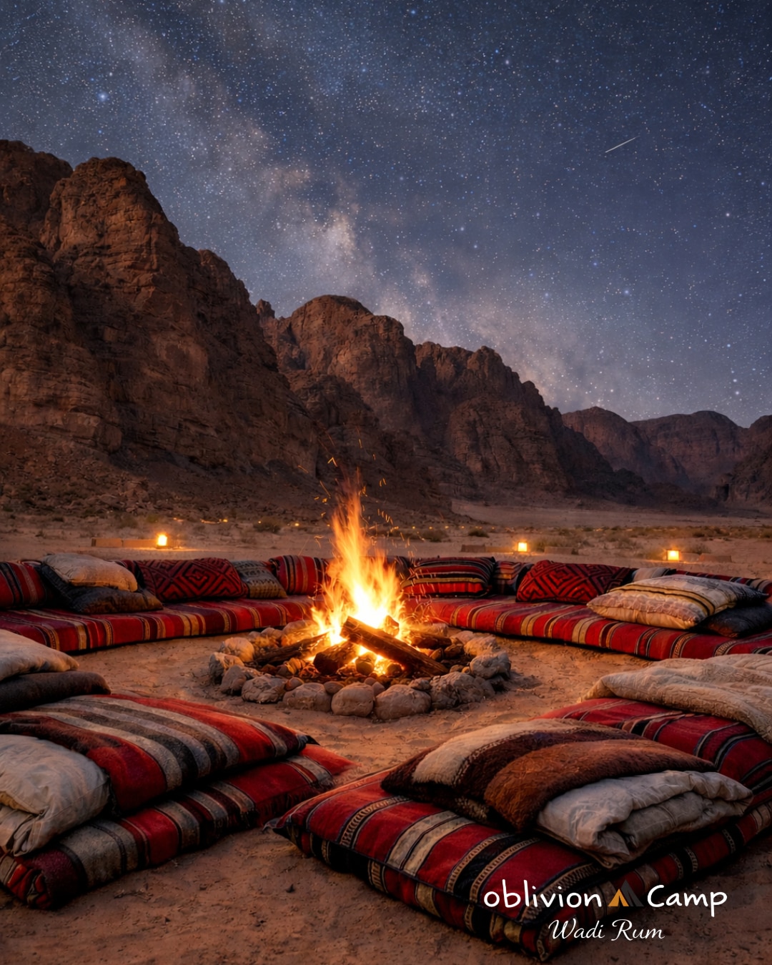 Desert Sands Camp is considered one of the most beautiful camps in Wadi Rum. It features eighteen luxurious tents with stunning sunset views. The camp is situated within the film-making zone and has been crafted to preserve authentic Arab heritage, in contrast to most camps that are often crowded and bustling. Uniquely, the camp boasts a high terrace where visitors can quietly contemplate the desert. Opposite the camp, the films Star Wars and Aladdin were produced.