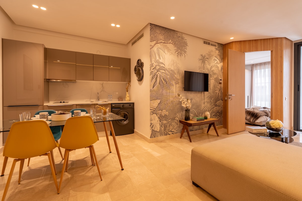 Découvrez notre logement unique en plein cœur de Casablanca. La résidence Solstice est neuve et bien sécurisée avec caméras 24/24h à l’entrée. Bien située en face du marché, à 5min à pieds de la mosquée Hassan II et de la Corniche, 3min de l’hôpital... Appartement neuf et moderne avec chambre, salon, table à manger, cuisine, salle de bain et balcon tout équipés. Ménage assuré avant et après votre visite pour vous proposer un logement accueillant et élégant, de quoi passer un agréable séjour! ☀️