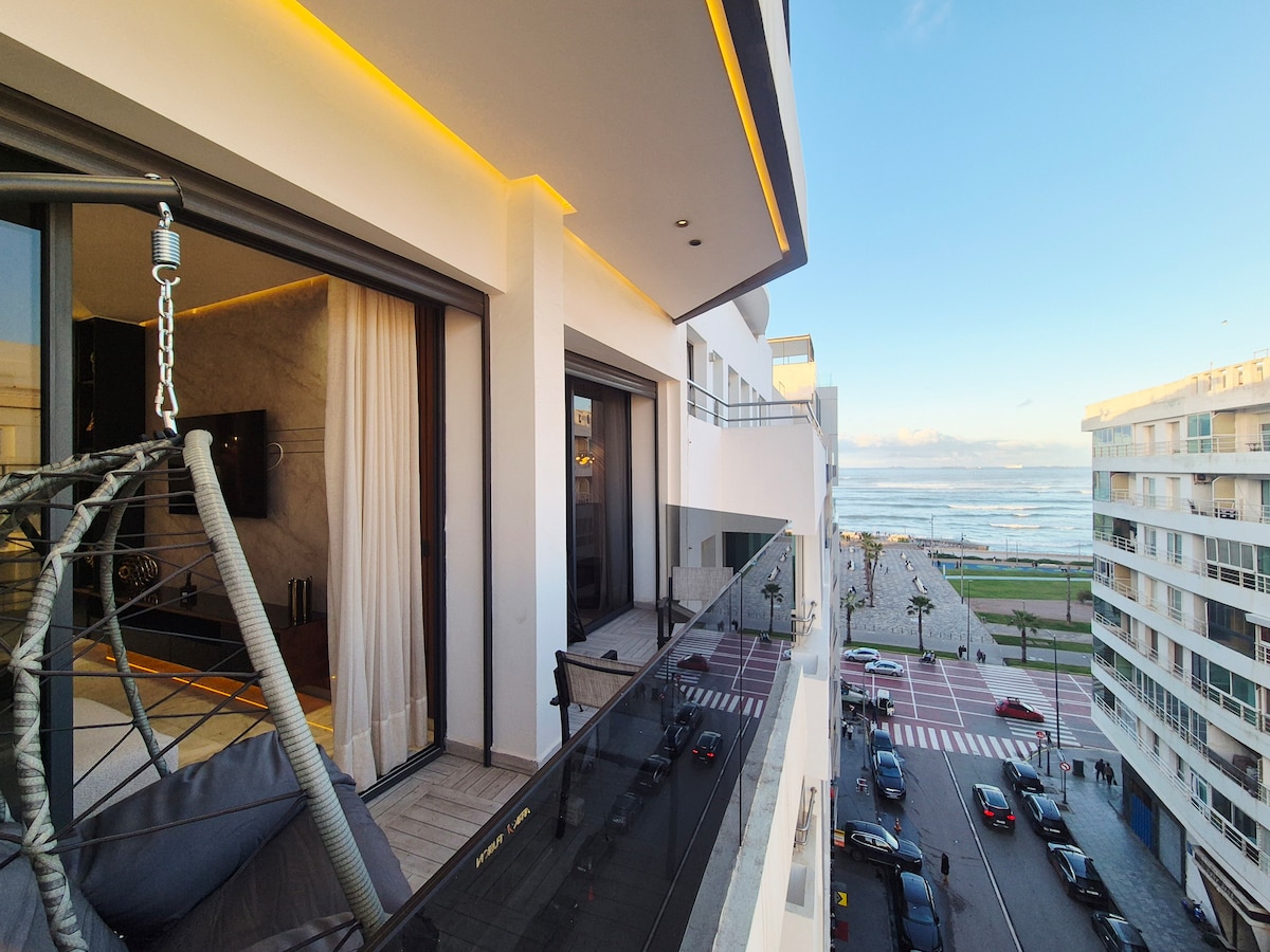 Front de mer 1ère Ligne, Vue unique sur Océan à 20m, Mosquée HassanII, et sur la Corniche. Lumineux, Étage élevé, Prestation de Luxe. Fibre, Wifi Haut Débit. Promenade Bord de Mer en bas de l appt ainsi que Resto, Café, Boulangerie, et toutes commodités. Restos, Bars branchés à moins de 5 minutes. Supermarché à 3 minutes, Gare Casa Voyageurs et Port à 5 minutes. Médina, Bazars à 5 Minutes. RicksCafé, Squala à 3 minutes. HyperCentre,Tram. Parking ss-sol gratuit. Navette aéroport payante possible