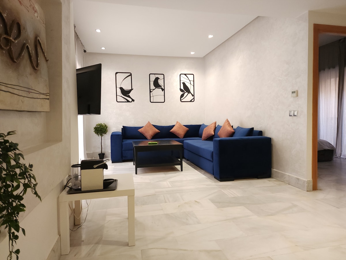 Coup de coeur Profitez de votre séjour dans cet appartement paisible tout neuf propre et confortable ,ideal pour les voyages d'affaires et les visites touristiques ,parfait pour les couples. Située au cœur de Casablanca ,tout est à portée de main, et la station de tramway est à seulement 1 minute à pied. L'appartement dispose d'une chambre confortable, d'une salle de bain impeccable, d'une cuisine entièrement équipée et d'un salon lumineux équipé d'un grand écran Tv et deux terasses balcons.
