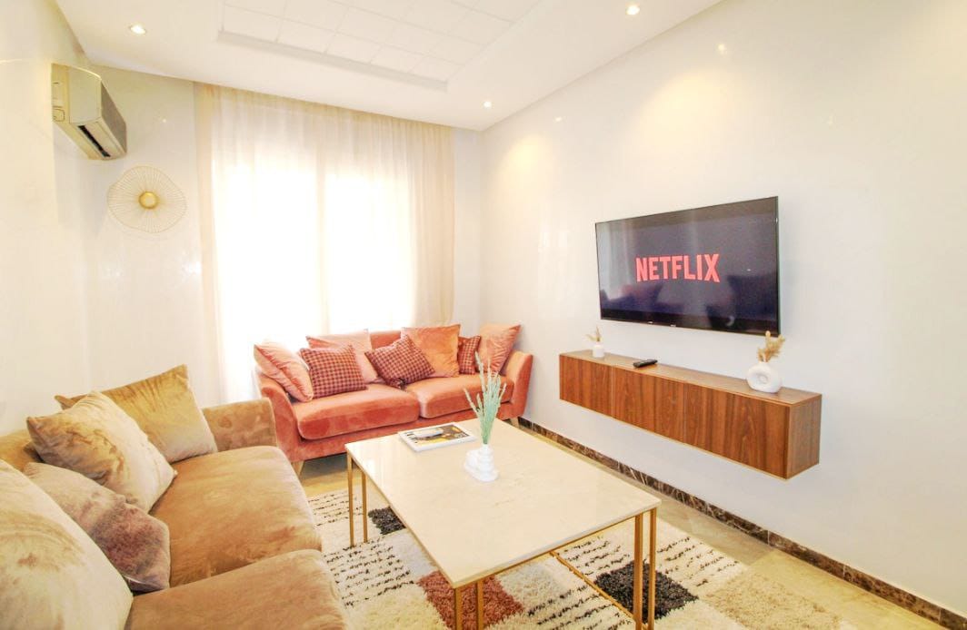 ✨ Elegant retreat in the heart of Casablanca, right across from Casa Port train station. This bright and spacious 83m² apartment offers all the comfort you need for a perfect stay and can comfortably accommodate up to 5 guests. It features 2 peaceful bedrooms with garden views, a home cinema-style living room (75" TV), a balcony overlooking the Hassan II Mosque, a fully equipped kitchen, and a dedicated workspace. Perfect for relaxing moments, whether for a weekend or an extended stay 🌇🌿
