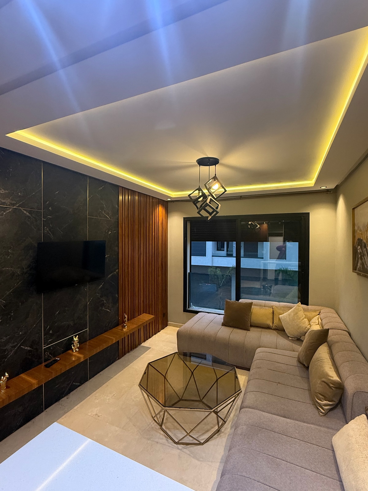 Un vrai cocon alliant luxe et confort, ce studio située au coeur de CASA est un vrai havre de paix où vous trouverez tout ce dont vous aurez besoin durant votre séjour. En effet, ce studio est entièrement équipé pour vous garantir un séjour tout confort. Situé dans un quartier sécurisé et proche des commodités. La décoration est soigneusement pensée pour créer une atmosphère à la fois chaleureuse et luxueuse. Le choix parfait pour un séjour mémorable. Noté bien que la loi marocaine s’applique!