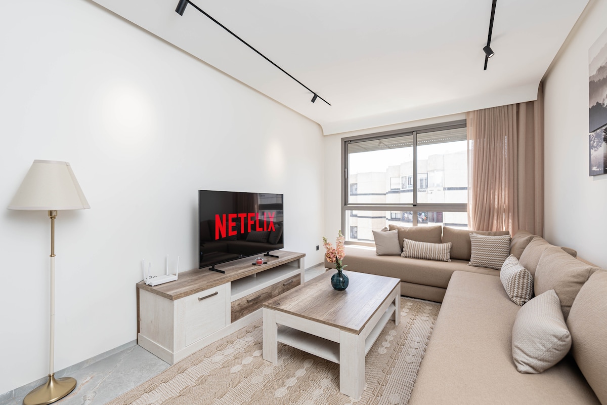 Discover the peaceful charm of the Palmiers neighborhood in Maarif, Casablanca, from our elegant apartment. Combining modernity and comfort, this contemporary space offers you a truly serene getaway. Enjoy WiFi, Netflix, luxury bedding, and proximity to the city center and tramway. Book now for an exceptional experience in this charming urban oasis.
