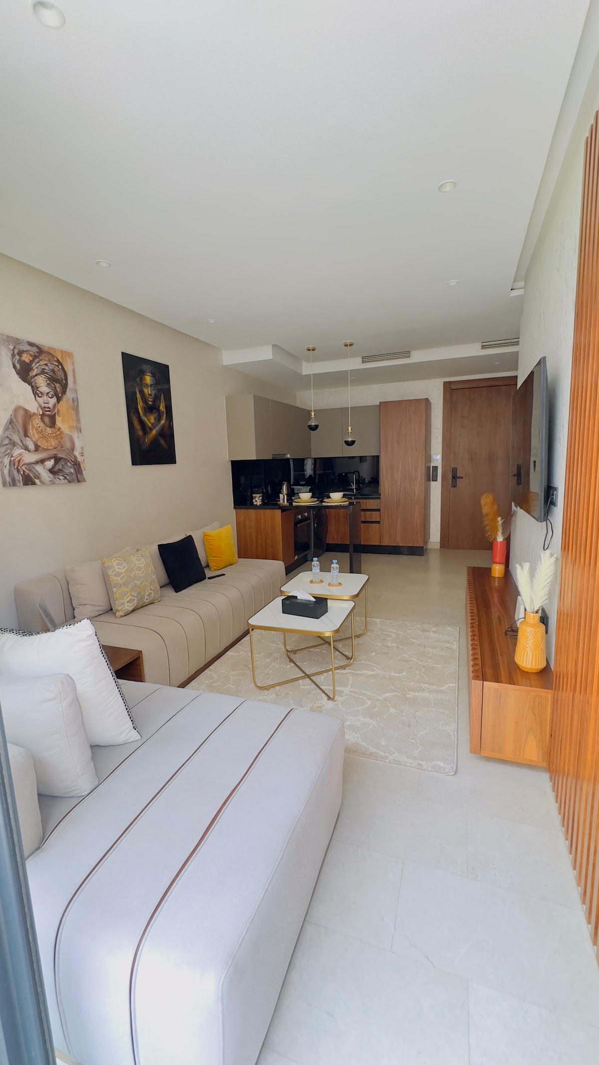 Experience the perfect blend of luxury and comfort in this stylish studio located in the heart of Casablanca. Ideal for both business travelers and vacationers, this modern space features a fully equipped kitchen, a dedicated workspace, and a private terrace for your morning coffee or evening relaxation. Unwind in the spacious living area with floor-to-ceiling windows that flood the space with natural light, or take advantage of the on-site gym to stay active during your stay.