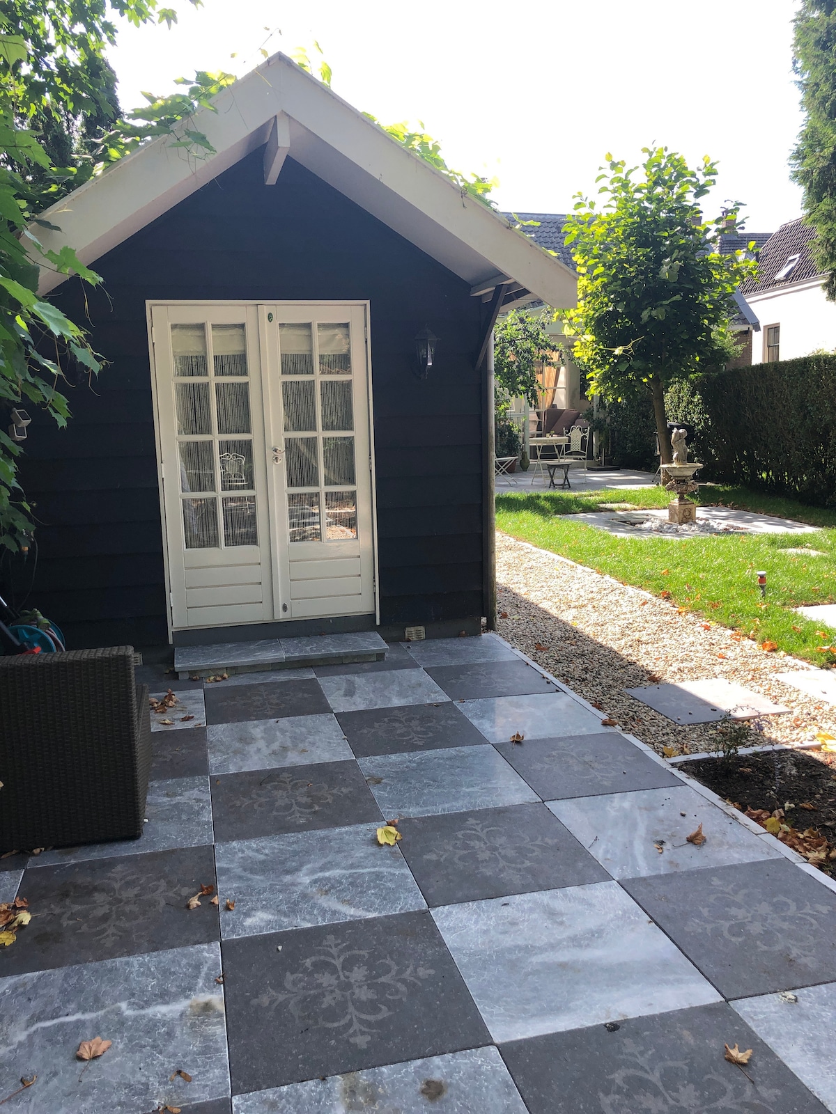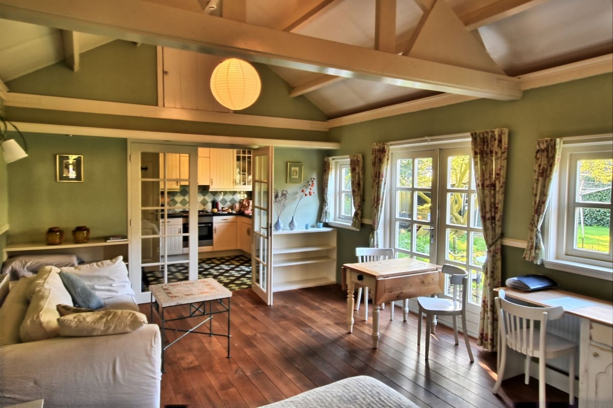 Please note that the address is Achter Raadhoven 45A, a green garden door, and not Achter Raadhoven 45, where our neighbor lives. De Boomgaard (The Orchard) is in the walled garden of an 18th-century house on the legendary Vecht River, where Dutch country life was born. The b&b is a complete cottage of great charm and comfort. Guests have their own entrance, with free parking a few steps from the door. They have their own entirely private bathroom and kitchen.