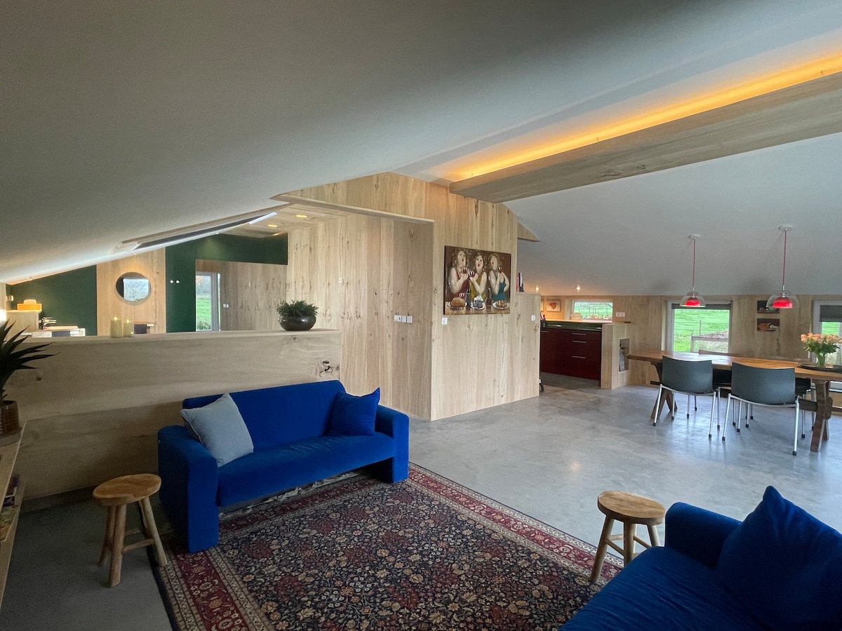 Bohemian Farmhouse is not a standard holiday home. It feels like staying in a private museum, filled with art, objects and atmosphere. A place for people who value quiet, character and space (but still close to Amsterdam). The backhouse is what we offer for rent: this used to be the stables in the old days and is now a big, open space with an upstairs. The house is surrounded by a 800m2 garden, included the space under the haystack.
