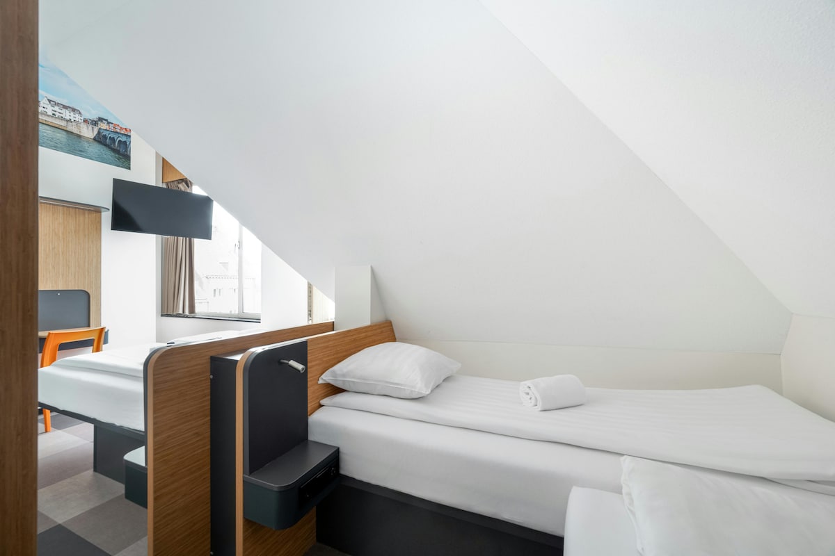 This small double room comes with a double bed, air-conditioning, 32" TV and free Wi-Fi. All rooms in the Maastricht City Centre hotel offer comfort and cleanliness at a budget price to allow you to spend time to explore our great city outside of your hotel room. Room size 11sqm. Please note that €4.58 per person per night city tourist tax is not included in the Airbnb price and must be paid directly to the hotel.
