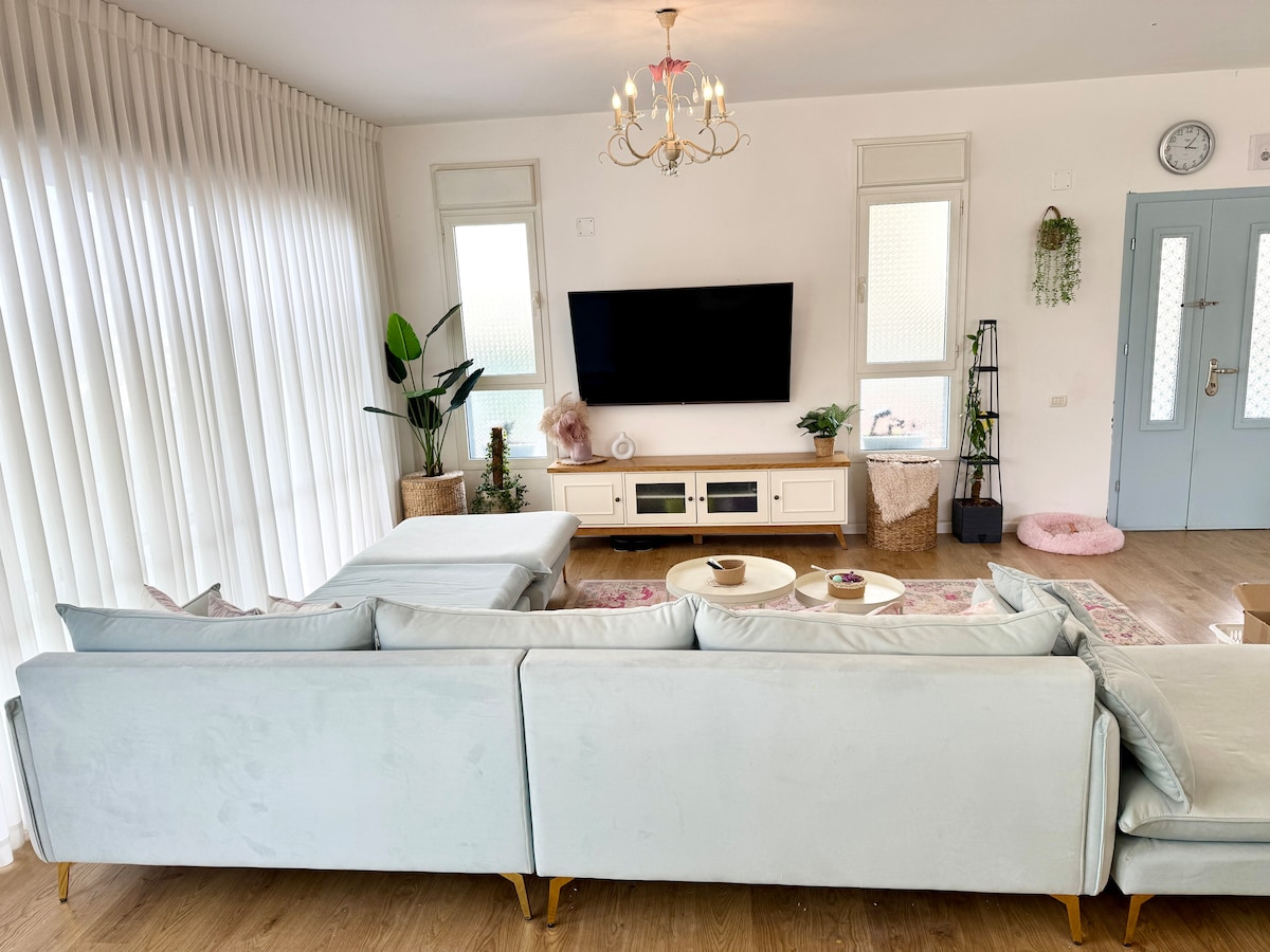 Located in one of the most beautiful areas of Israel, 10 minutes from the Gilboa mountain, Gan-Guru, Gan-Hashlosha and Ma'ayan harod parks, our spacious house is your home away from home. Our big terrace and pergola will give you front row view of the Gilboa mountain and Harod Valley. With lots of attractions and trails around this is the perfect vacation for families, couples and friends.