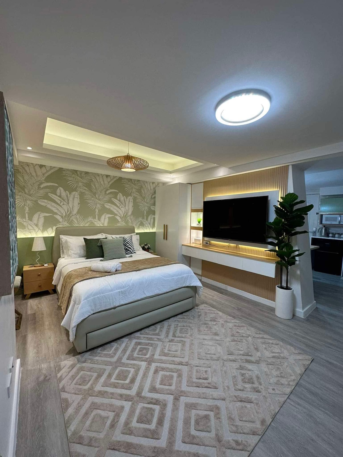 Experience a relaxing stay in this big, spacious and stylish 1-bedroom unit at Kandi Palace ( 8th floor ). Complete kitchen utensils Upgraded Big 2 TV Refrigerator Microwave oven Big Sofa Office table and chair Dining table and chairs Balcony table and chairs Cable, stream tv Fast WIFI White and blue lights Shower heater Water heater Fully Furnished Free Parking Area Rooftop access: Swimming pool Restaurant Closer to the action yet still quiet, perfect to relax 🌸