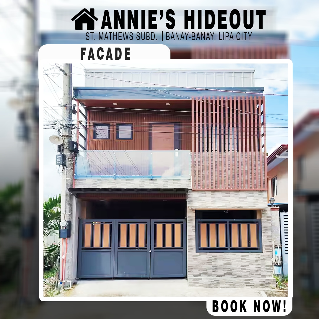 Near SM Batangas City (5minutes walk). The quoted nightly rate is for 1 pax only; there’ll be xtra nightly charges for the other guests. Only the caretakers has the gate-key to ensure that only registered Airbnb guests are inside the Compound. NOTE: there is a 10PM gate-curfew. BUT they are there 24/7 so arrangements for exception can be made with them. CCTV. WiFi. Private water supply/heater. BR with AC & a queensize bed. Kitchen/ref/basic condiment. Laundry room for handwashing.