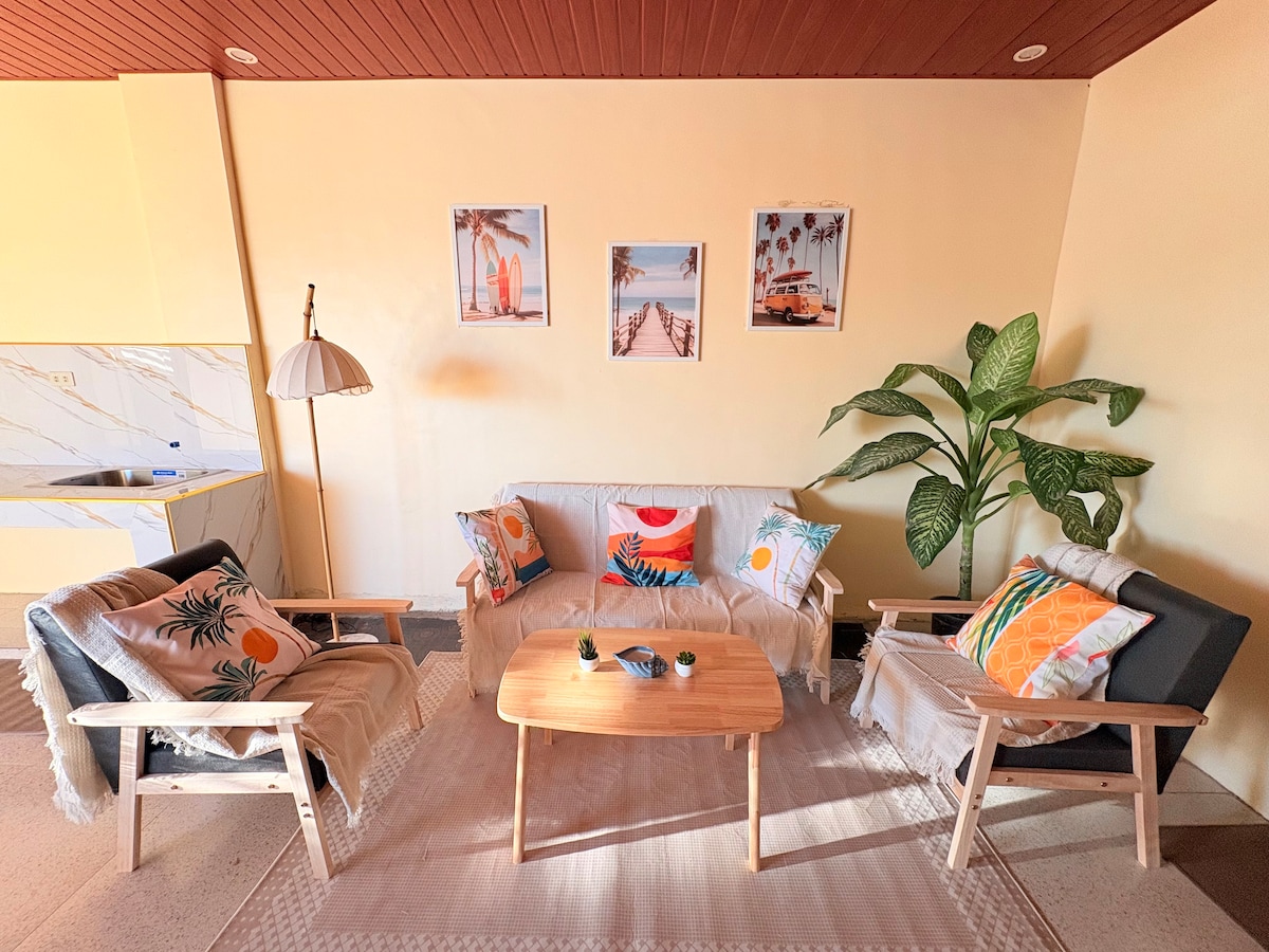 Welcome to Casa de Ligaya (House of Joy)! This is our "happy place" that lets you relax, enjoy the scenic view of the sea, and escape from the bustling urban life. The house is a two-storey modern rustic structure decorated with native wooden furniture. On the upper floor you have the common area and Ioft for people to hang out and rest. On the ground floor you have the living room, lounging area, and a separate private room. There is also a “casita” structure behind the main house.
