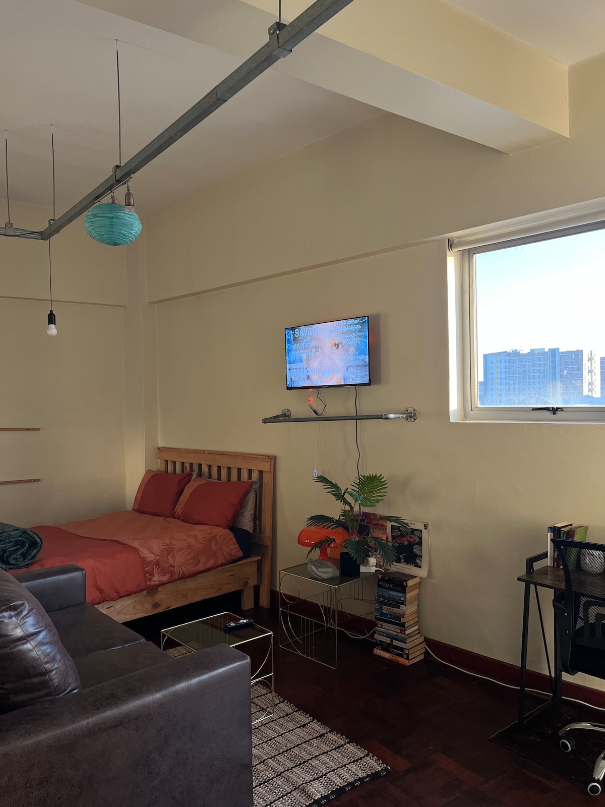 Come and experience authentic urban living in a modern style loft apartment that offers easy access to a world class city and a break away from the hectic city life. The Exchange loft is situated in close proximity to retail nodes with trendy restaurants such as Stanley 44 and Rand Steam. It’s also near well known universities and colleges, as well as hospitals and medical centres. Guests have unlimited WiFi access and Netflix is available for entertainment.