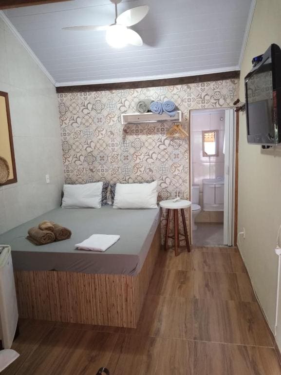 🍀Suíte Gratidão 🙏 : Para casal ou para até 5 pessoas ✅1 cama de casal ✅1 treliche ✅Café da manhã incluso ✅Televisão 32 polegadas ✅Frigobar ✅Ar condicionado / ventilador ✅Roupas de cama e toalhas ✅Banheiro privativo