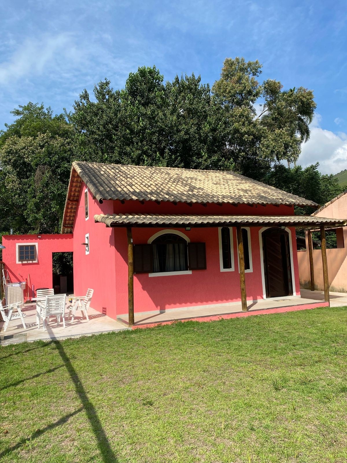 Casa em alto padrão com 2 quartos, sendo uma suite com hidro, com piscina e churrasqueira, rodeada pela natureza, traquilidade e privacidade. Capacidade de 10 pessoas (acima de 8 sob consulta). Casa fica na Barra do Sana, a 16 km de Casimiro de Abreu e 6km do centro do Sana, região serrada de Macaé. O endereço que aparece no aplicativo não é exato, mas enviamos a localização exata e várias outras informações, após a confirmação da reserva.