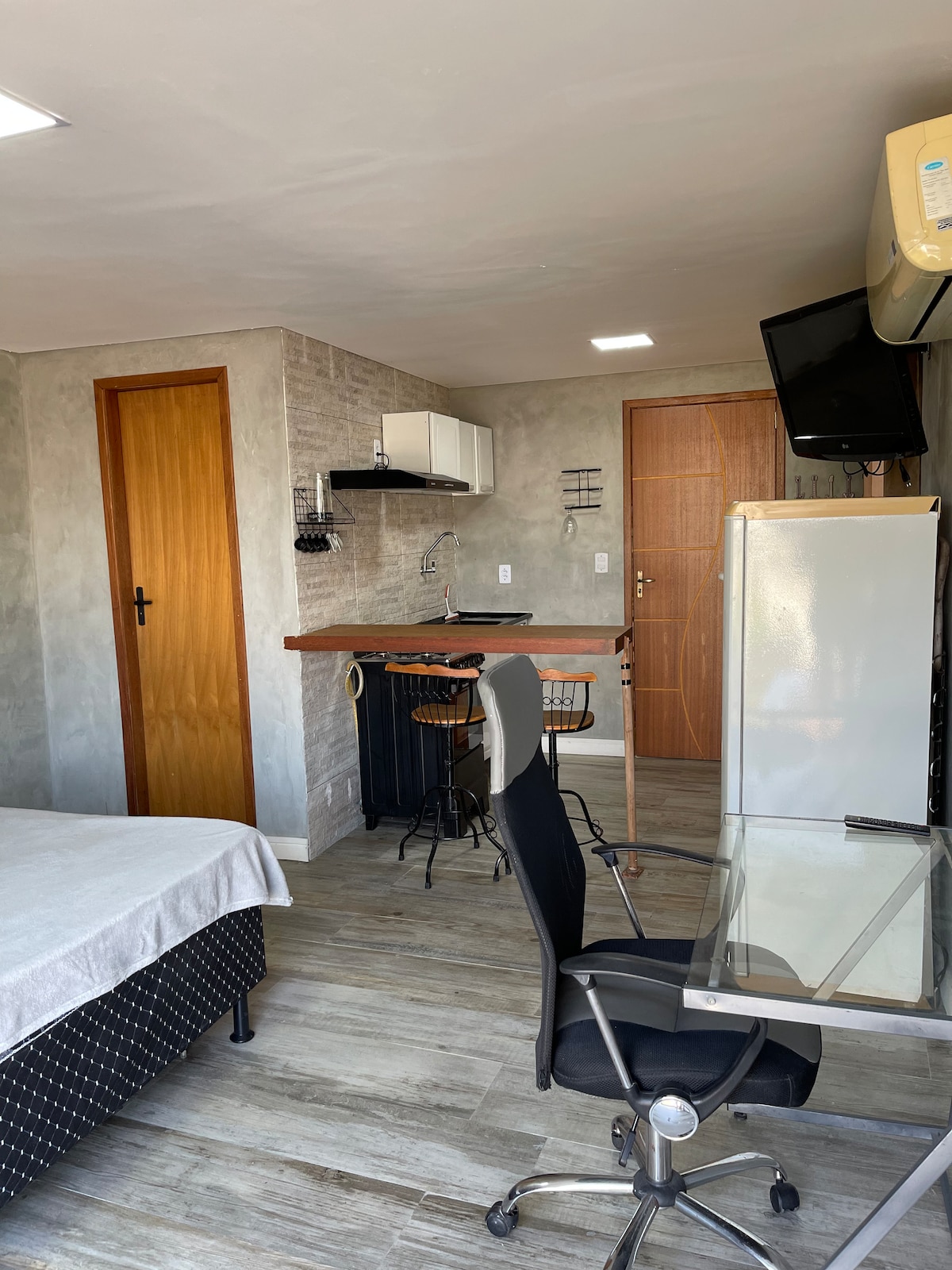 Estúdio moderno e super aconchegante, localizado de frente para a Praia do Pecado, em Macaé. Com cama confortável, ar-condicionado, TV, frigobar, mini cozinha equipada, banheiro espaçoso e área de trabalho com escrivaninha. O prédio oferece piscina, restaurante e muito conforto. Ideal para quem busca praticidade, descanso e uma vista incrível do mar. Perfeito para casais, viajantes ou quem vem a trabalho e quer relaxar com estilo.