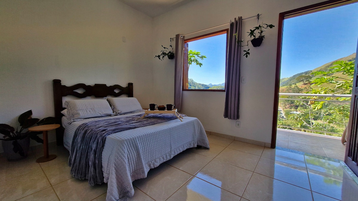 Nosso espaço é cercado por uma exuberante natureza, com sauna e cachoeira na porta de casa, uma vista incrível e muito sossegado! Aqui você pode fazer caminhadas ou escaladas, ter contato com agricultura familiar sustentável e consumir alimentos saudáveis produzidos na fazenda. Ótima experiência para casais, famílias com crianças, grupos e pessoas que buscam conhecer melhor a vida no campo ou mesmo curtir um fim de semana agradável em contato com a natureza.