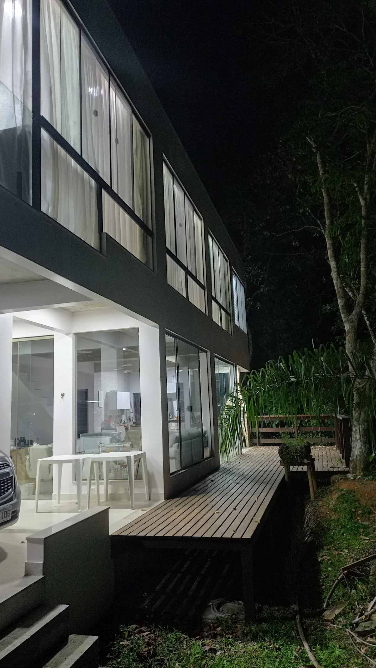 A brand new house, large land and lots of leisure. There are 3 bedrooms (2 suites) with a total of 8 beds. Smart TV and fans in all bedrooms; Living room with 65" TV and air conditioning, full American kitchen. Gourmet area with barbecue, refrigerator, smart TV and bathroom. Swimming pool with waterfall and 2 hydromassages. Huge backyard, peace, nature and rest guaranteed! Close to the center and less than 200 meters from a beautiful waterfall. Live this experience